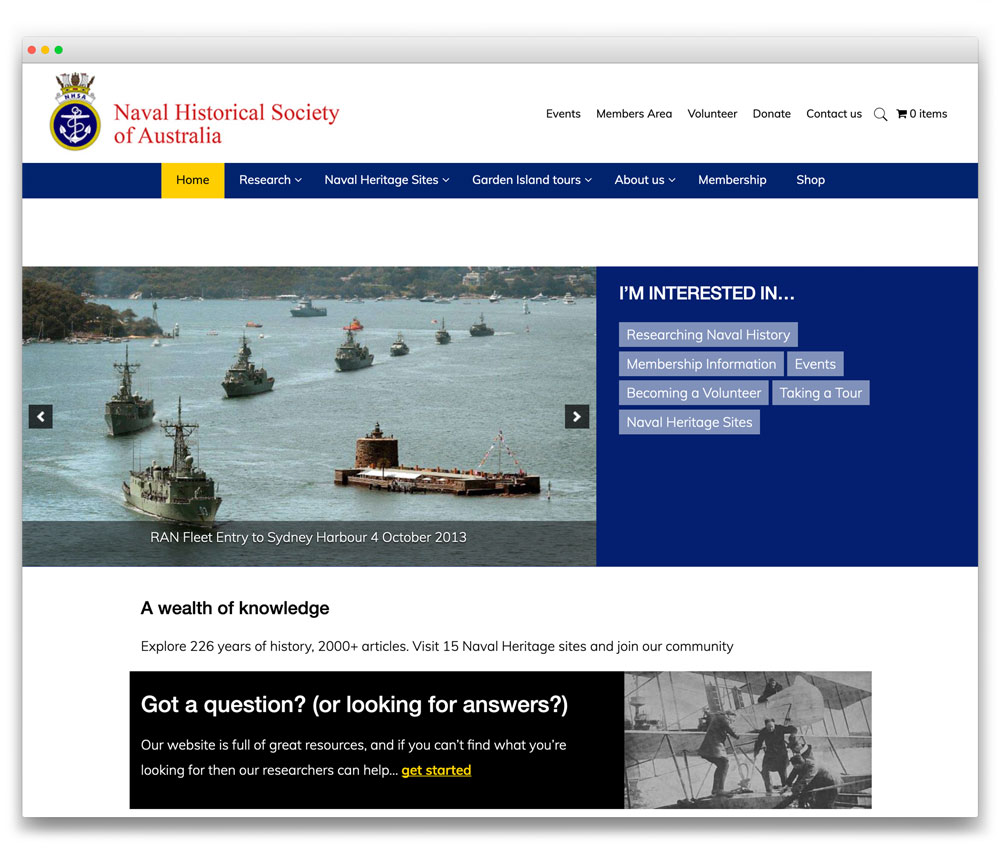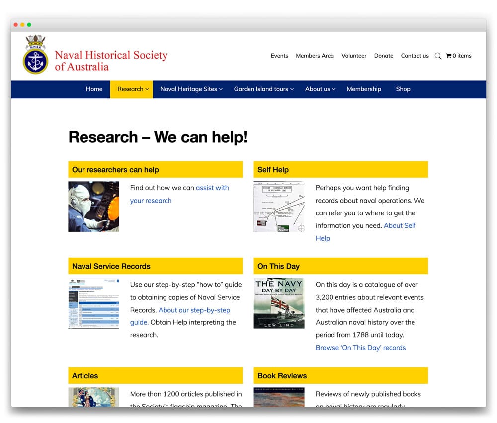 BRIEF: To create a new contemporary website to better share the library of articles, books and resources held in the NHSA collection, promote tours, attract more involvement, and increase membership. They were also looking to ease the load on volunteers spending time processing memberships and orders from their product catalogue.