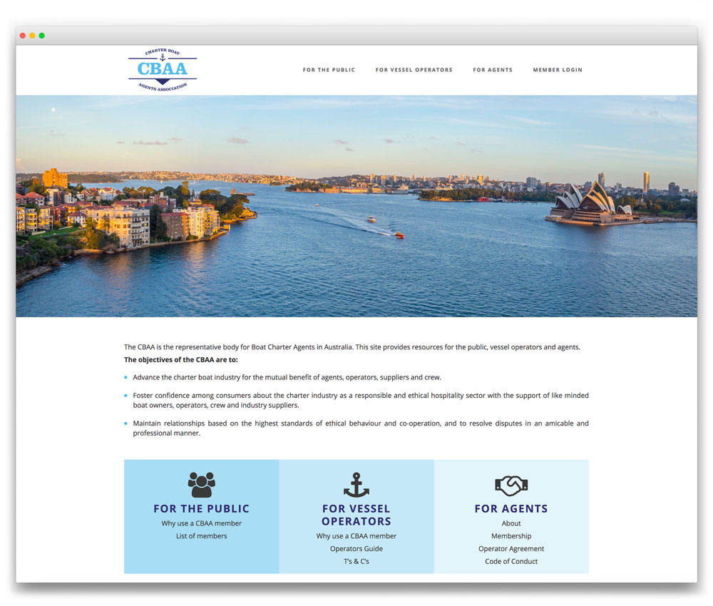 SOLUTION: We used the CBAA logo as a starting point and recommended a minimalist WordPress theme which we customised to suit. We sourced images and graphics to enhance the look of the site.