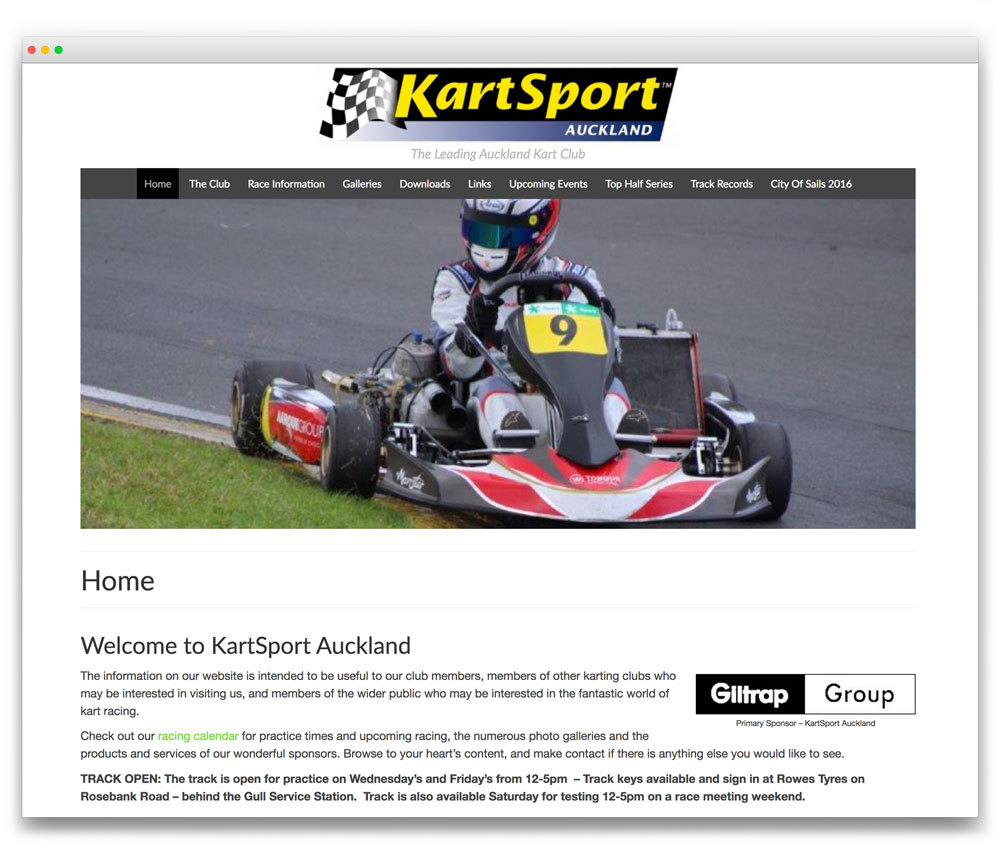 SOLUTION: We developed a site featuring an automated slideshow reflecting the active and people oriented nature of the kart club. We also incorporated a variety of plugins including for a race calendar, eNewsletter, photo galleries, race results pages and driver profiles.