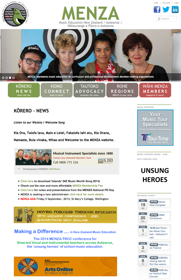 BRIEF: To build a website for Music Education New Zealand / Aotearoa | Mātauranga a Pūoro o Aotearoa, as a central element of a strategy to strengthen and reinvigorate the MENZA brand and to improve the organisation’s connection and interaction with its members.