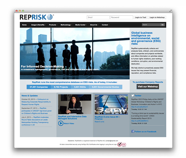 BRIEF: To develop a high quality content management system website for a multinational business based in Zurich, Switzerland that provides global business intelligence on environmental, social and governance (ESG) risks.