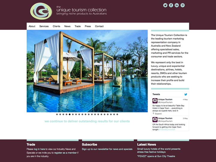 OUTCOME: A website that showcases Unique Tourism’s extensive services, provides a trade area that is useful to members and enables the client to attend to ongoing refinement expansion and refinement of website content in-house.
